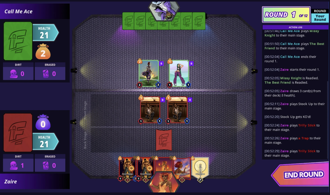 Five Mics is a hip-hop inspired trading card game that connects physical play with a digital client. I own the Unity client, the server-authoritative flow, and the card-authoring pipeline.